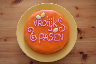 En Eva, die heeft weer een overheerlijke fantastisch mooie paastaart gemaakt. Hoe ze die letters zo mooi krijgt, het is voor mij een raadsel, ik kan het niet. We hebben gelukkig nog een heerlijk stukje over voor vandaag, maar ik kan je verzekeren dat er geen kruimeltje van overblijft! En dat terwijl ik heerlijk lag te slapen na mijn proefnachtje werken. Dat zijn nog eens verrassingen als je wakker wordt.
